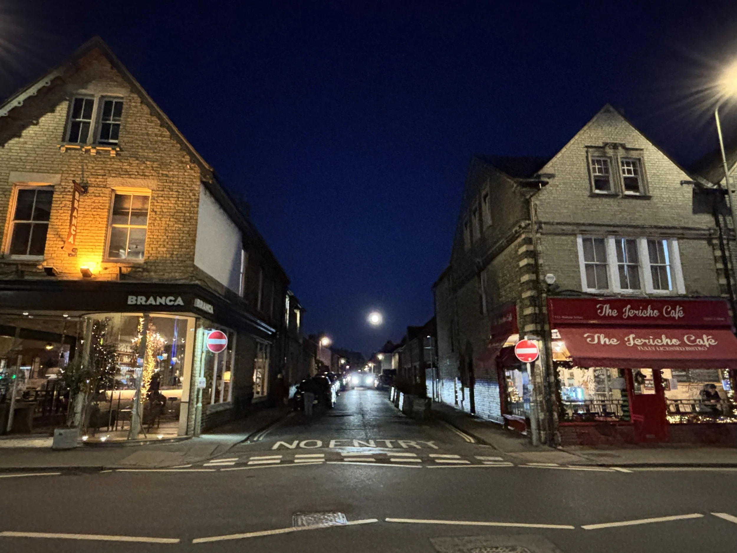 As I nipped to the shop at the end of the road for some groceries and treats, I looked back at our street. A bright full moon hung over it, joining the season’s illuminations in the restaurants and cafés. It was a beautiful scene — perhaps one for a future Christmas card.